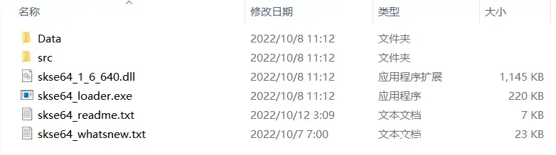 SKSE64 壓縮包下載完成後解壓縮,選中壓縮包內檔案