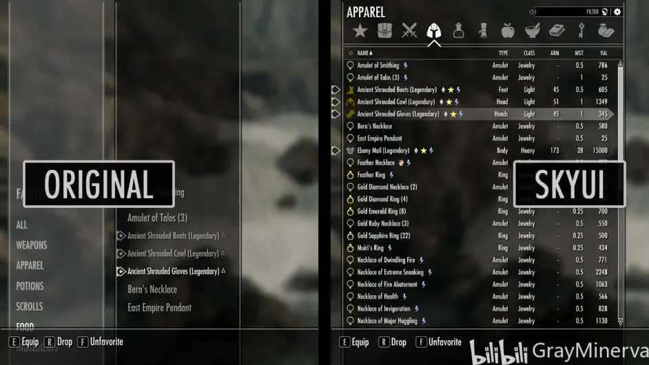 左圖為原版天際UI,右圖為SKYUI