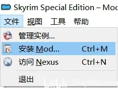 回到MO2的主介面,點選檔案-安裝Mod,選中我們剛才下載好的壓縮包