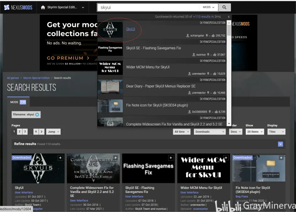 例:安裝SKYUI https://www.nexusmods.com/skyrimspecialedition/mods/12604