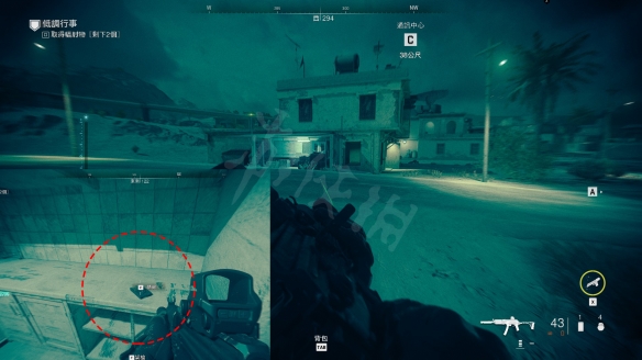 在B區放核彈的建築物,從建築物南側爬梯直接上屋頂。