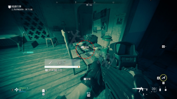 在B區放核彈的建築物,一樓一個有油燈的桌子上。