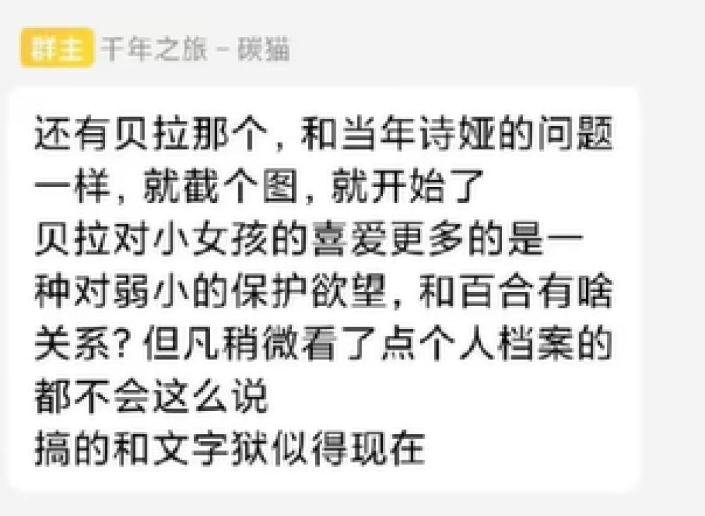 就拿截圖中的製作人提到的貝拉來講,很多玩家破防甚至大呼上當,是認為這名角色有“百合”傾向,無法接受。製作者碳貓的迴應是貝拉這名角色展現出的並非“百合”,而是“對弱小的保護慾望”。