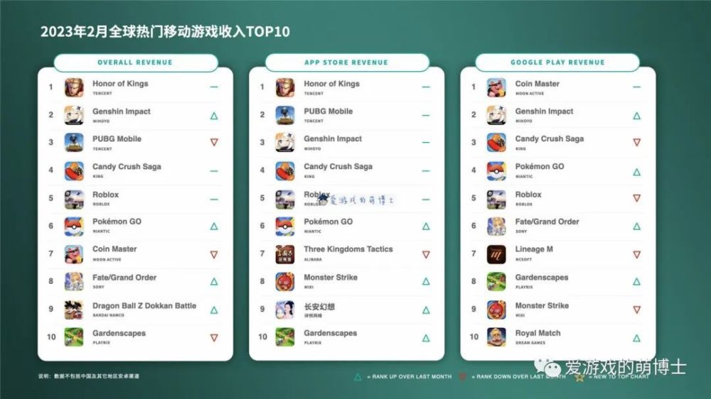 時間的流逝讓人意識不到,三月中旬瞬息而至,又到了博士來分享上個月全球手遊暢銷榜的時候了。2023年1月份,全球最賺錢的手遊TOP3分別是《王者榮耀》、《絕地求生手遊》和《原神》,那麼2023年2月份呢?稍早海外知名統計網站Sensor Tower正式發表了2023年2月全球熱門移動遊戲收入榜單,我們可以來看看是否有變化。