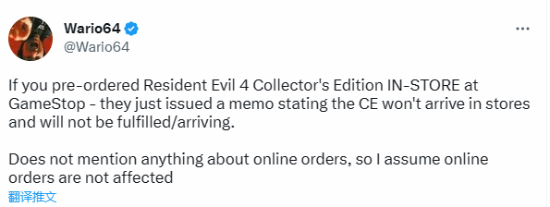 據VGC訊息,遊戲零售商Gamestop取消了店內所有的《生化危機4重製版》珍藏版版訂單。
