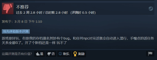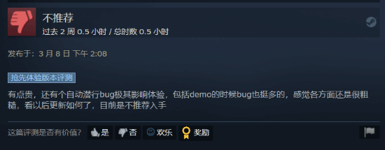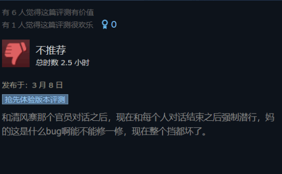 而另一方面,遊戲的BUG仍然比較多,有些甚至會影響到遊戲進行。除此之外敏感詞的設定也讓部分玩家感到不解。