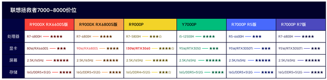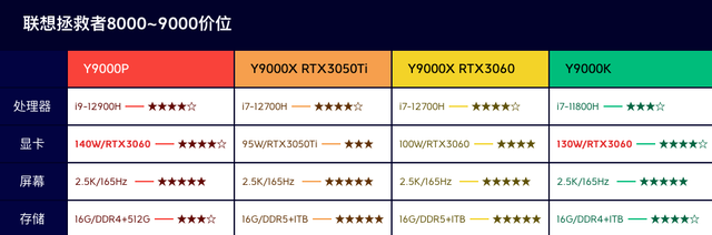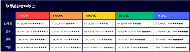 拯救者的系列型號太過於複雜,因此我們直接按照價位分開對比,簡單粗暴有效,如圖所示: