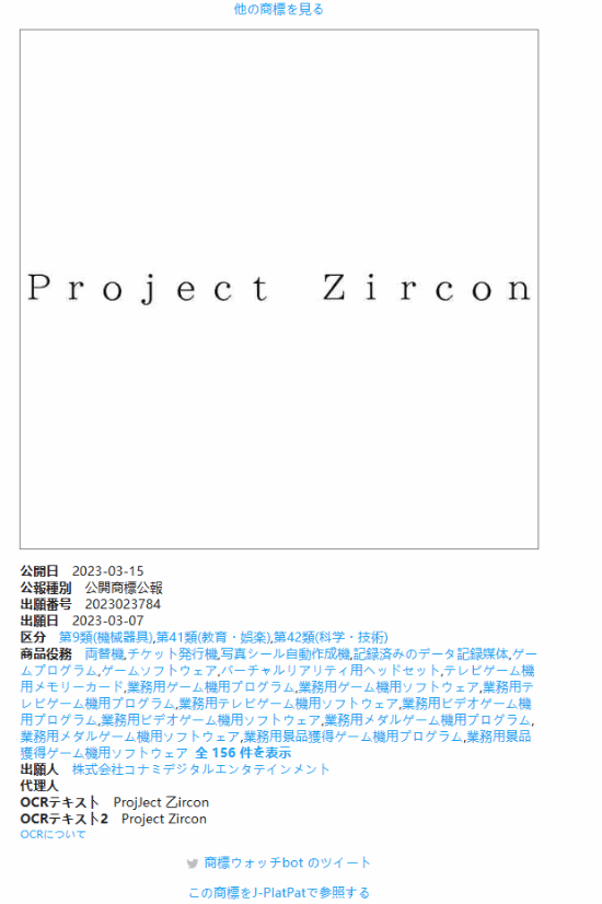 據gematsu訊息,科樂美在3月7日在日本申請了名為“Project Zircon”的商標。