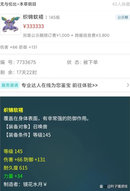於是,這位小夥伴就以33.33W的價格將其掛到了藏寶閣上。不知道各位小夥伴覺得,這個價格是高了還是太保守呢?