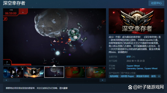 這款名為《深空倖存者》的彈幕射擊遊戲,釋出於2022年11月。儘管只是搶先版本,但依舊得到了不少中國玩家們的支援。它融合了肉鴿玩法的特性,同時也兼具“刷子”遊戲的爽快感。如果要做類比,《深空倖存者》像是太空版的《吸血鬼倖存者》。