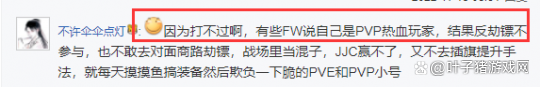 《劍網3》玩家針對這個現象展開討論,因為最近總有遇到這種事,被人打了之後換回一身PVP結果人家就跑了,甚至還嘲諷你一頓;還有人想去打個大戰被殺了十幾次,氣不過罵人了,結果還被封號了,屬於是非常無奈了。
