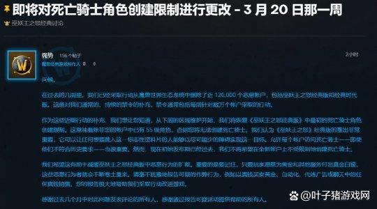 暴雪顯然是意識到了這點,於是對死亡騎士進行了正式的調整。不過並沒從職業和角色機制上進行改變,而是提高了建立門檻。真正的玩家肯定不會被55級的等級限制所束縛,但工作室卻一定會因為練號成本的提升,而放棄死亡騎士。
