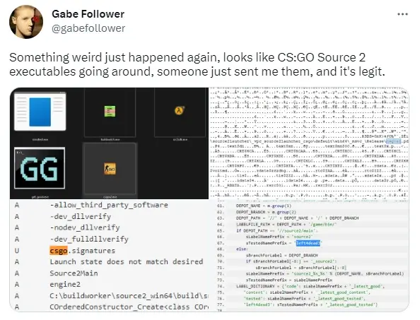 據Twitter使用者(gabeffollower)透露,在前一段時間洩露的《CS:GO 起源2》相關程式碼中,有一行程式碼包含“left4dead3”作為字串。