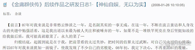 通過網路上的隻言片語,人們得知醋仙在“隱退”期間輾轉過幾家遊戲公司,參與了不少頁遊和手遊專案。