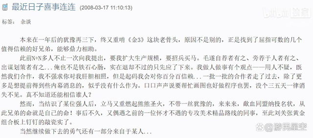 相比最初的默默無聞,《金2》的成功讓醋仙在圈內有了相當大的名氣,這反而成了他的負擔。據知醋仙所講,《金3》的開發歷程十分坎坷,也給他留下了一段傷心往事。
