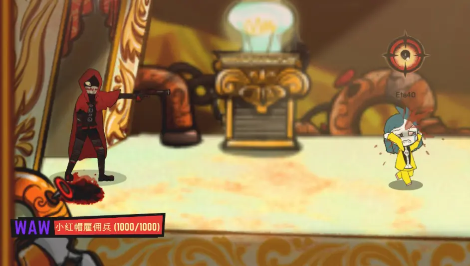 “小紅帽僱傭兵”使用火銃進行射擊,對前方所有同房間目標造成15-18點物理傷害,然後會附加目標流血層數x5的物理傷害,並重置目標的流血層數。
