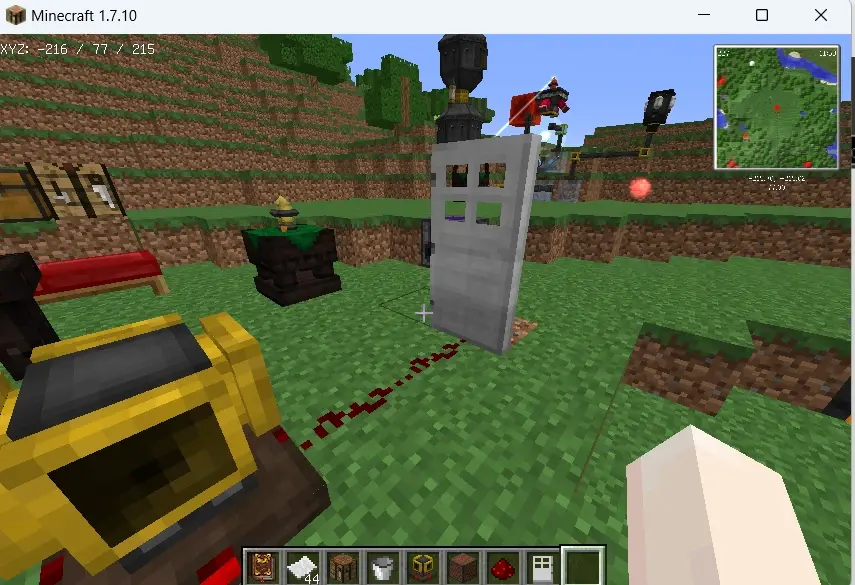 然後連線一個紅石系統(這裡用鐵門吧)。