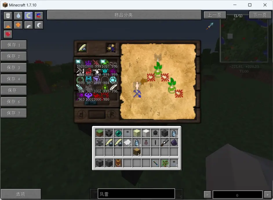 右鍵,將周圍的掉落物吸取過來,跟隨你。