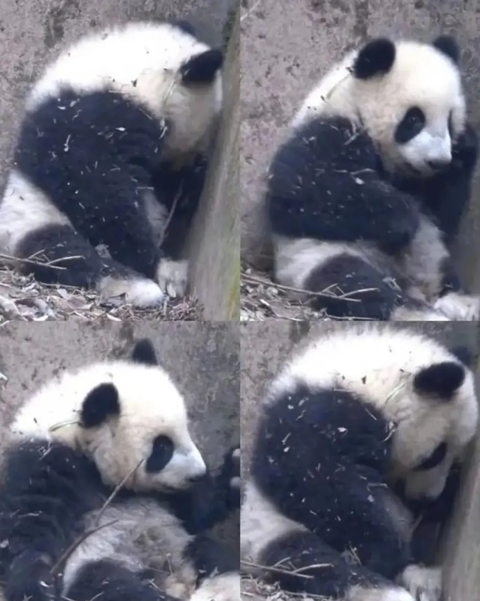 據瞭解,大熊貓福菀由於先天性肢殘疾,後肢無力,行動不便,只能用前爪拖著身體爬行,平時自己喜歡獨自躲在一旁玩耍。角落是它最喜歡待的地方,因為在那裡,它可以靠著牆坐起來,安靜地獨自玩樹枝樹葉,一玩就是很久。基地也會對福菀進行鍼對性的照料、治療等。