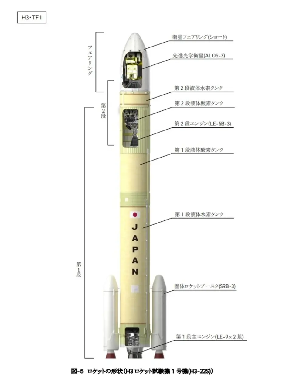 H3火箭是日本現役主力運載火箭H2A火箭的後繼型號。H2A於2001年投入使用,因此這是日本運載火箭時隔20多年的更新換代。H3火箭第一級主發動機採用日本獨立研發的LE-9膨脹迴圈氫氧發動機;第二級火箭採用LE-5B-3發動機,這款發動機是H2A火箭第二級採用的LE-5B發動機的改良版,具備在軌道上多次點火功能;根據需要,H3火箭還可裝備2個或4個固體火箭推進器。本次準備發射的H3火箭有兩個固體火箭推進器。