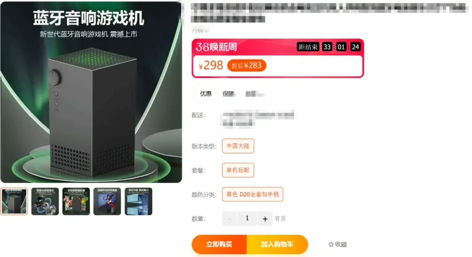 據悉,這款懷舊經典街機藍芽音箱遊戲機售價298元,3·8煥新周折後價283元。購買還附贈一個手柄,有購買過的玩家表示附送的其實是PS造型手柄。