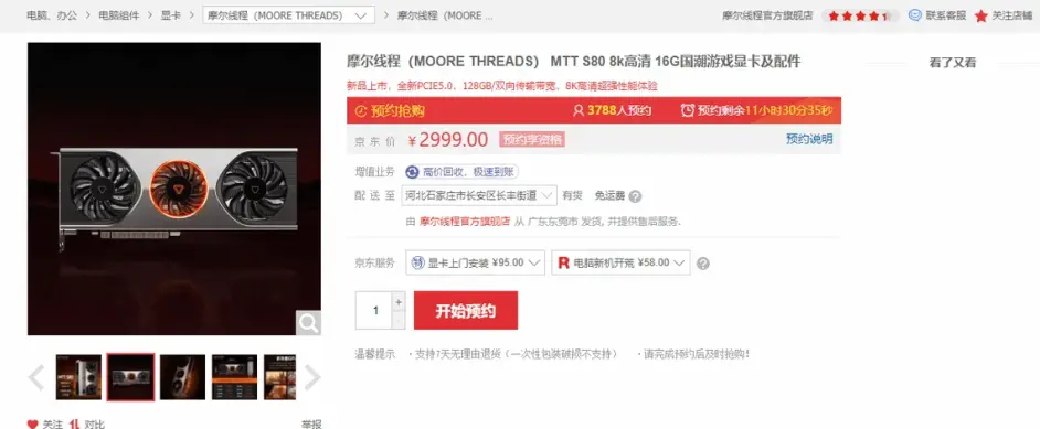國產遊戲顯示卡摩爾執行緒MTT S80放開購買限制:支援42款遊戲 1800元近日,首款國產遊戲顯示卡摩爾執行緒MTT S80悄然放開了購買限制,現在已經可以在JD平臺直接預約下單了。