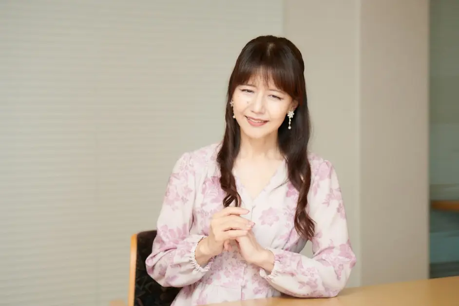 井上喜久子,生於1964年,她的代表作品有《亂馬1/2》的天道霞、《我的女神》的貝露丹蒂、《機動戰士高達第08MS小隊》愛娜·薩哈林、《CLANNAD》的古河早苗、《新·彈丸論破V3》的東條斬美等。女兒是配音演員井上穗乃花。