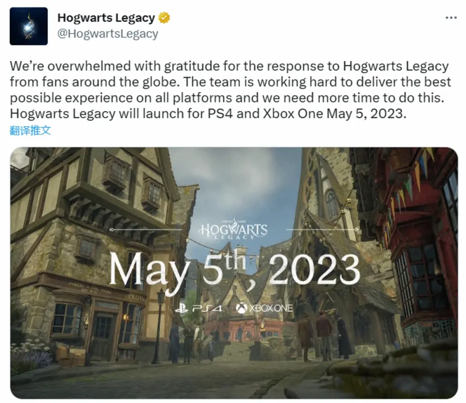 《霍格沃茨之遺》PS4/X1版再跳票!延期至5.5推出《霍格沃茨之遺》發推宣佈,原定將於4月釋出的PS4和Xbox One版遊戲將推遲至5月5日。