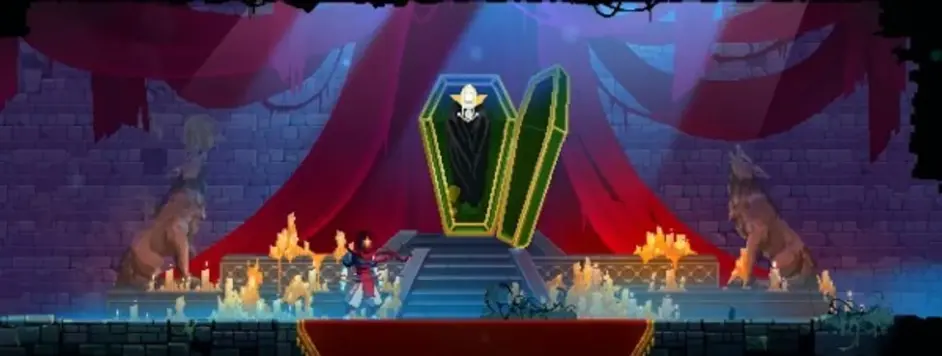 新發布的宣傳片毫無保留地展示了本次DLC的內容,且自豪地展示了來自EE的開發人員們對細節的雕刻和打磨,再次將德古拉城堡那華麗的哥特氛圍帶回了玩家眼前。惡魔城中的走廊、橫橋、露臺都在《死亡細胞》標誌性的美術設計下獲得了重生。此外,玩家還將在該DLC中:解鎖20個《惡魔城》系列標誌性角色面板,包括傳奇的裡希達·貝爾蒙特(裡希特)和阿魯卡多;揮舞14把惡魔城標誌性武器,血戰德古拉、美杜莎及死神本人。「重返惡魔城」是《死亡細胞》製作組寫給其靈感源泉《惡魔城》系列的一封美妙情書;同時,也包含了《死亡細胞》自發售以來最具野心的一場頭目戰——對戰德古拉的第二形態!死亡的陰影遮天蔽日,獸化德古拉的威壓令人窒息,玩家只有全力以赴,才有機會向死而生!但別擔心,在遊戲程序中,逐步解鎖的新能力將幫助玩家應對最後的頭目戰;瑪莉亞·里納德的貓也將化身新寵物並加入戰局,用它的尖牙利爪將敵人撕成碎片。