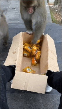 而猴子們也深諳“一方有難,八方支援”的道理,聽到貧困山區需要捐助,紛紛將手裡的麵包貢獻出來,希望實現共同富裕的目標。