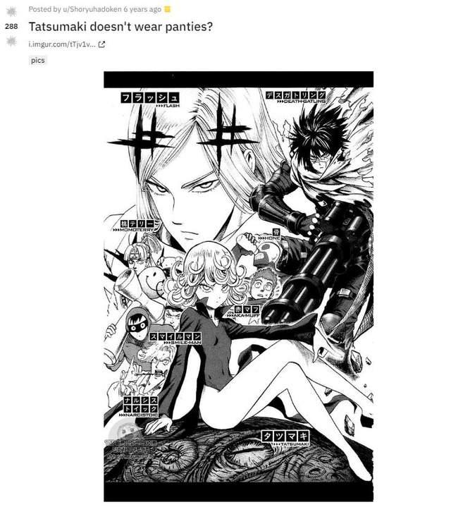 各國網友都這麼執著於龍捲內褲的原因很簡單,不是因為所有人都一水兒的是LSP,而是因為村田雄介在《一拳超人》重製版裡畫的龍捲,確實太容易讓人產生“到底有沒有”這樣的疑惑。