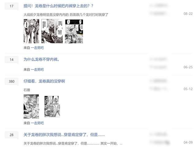 有外網網友在六年前就指出龍捲穿了內褲,並且拿出S級英雄裡最強大也最神祕的KING作為論據。但遺憾的是,另一位網友用“KING擁有帝王引擎的套件帝王全知眼”反駁了他,獲得了更多網友的讚許。