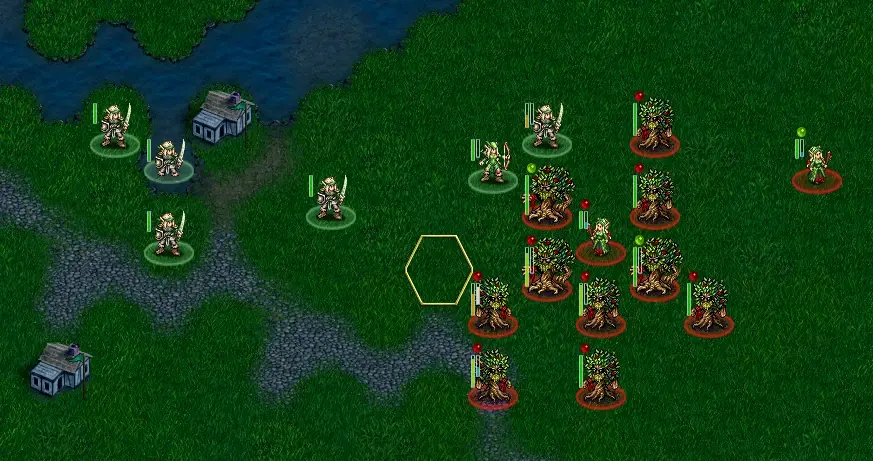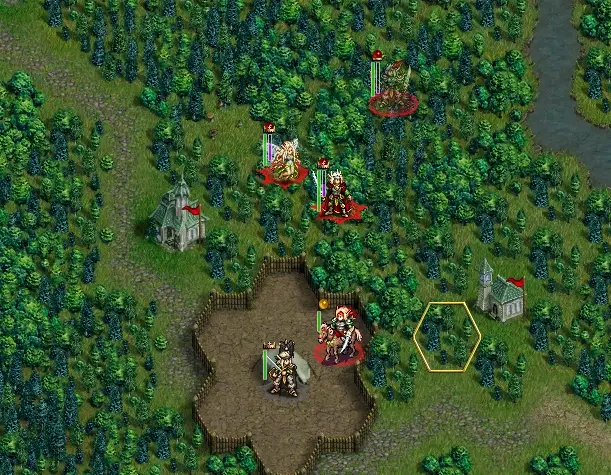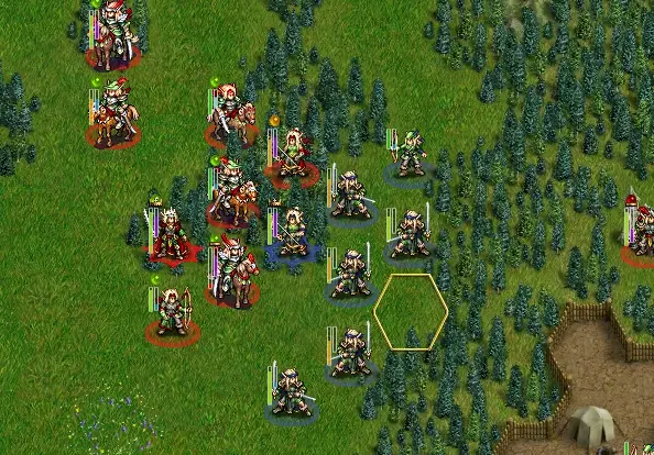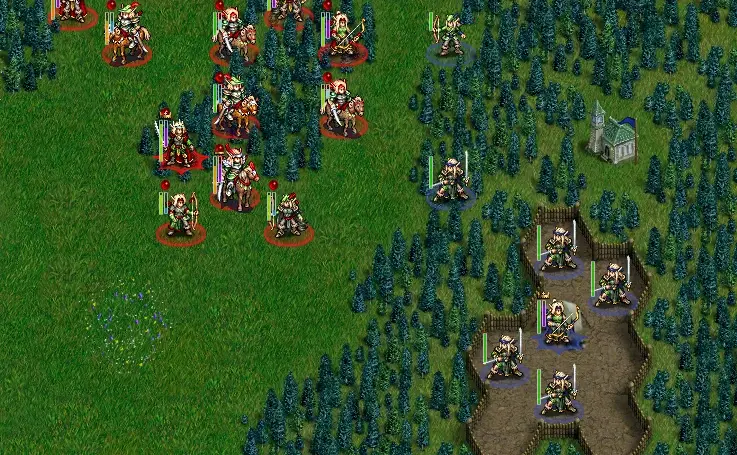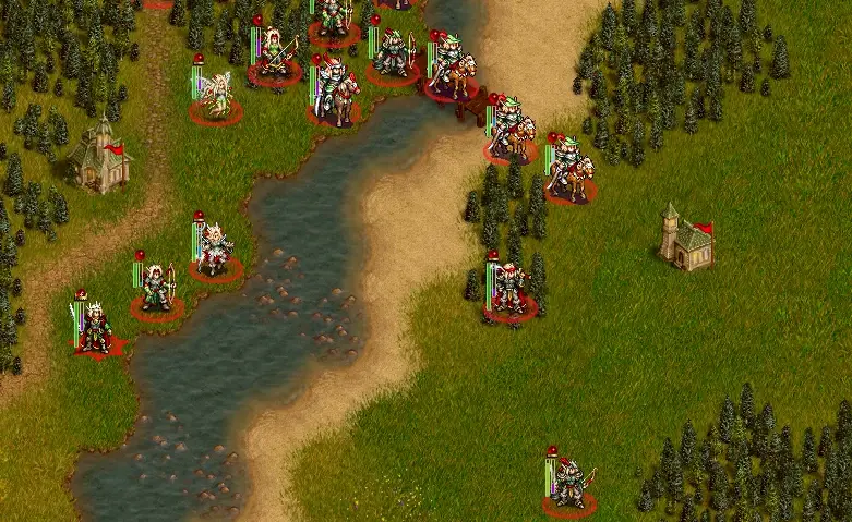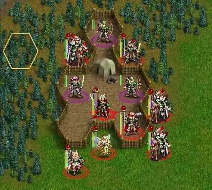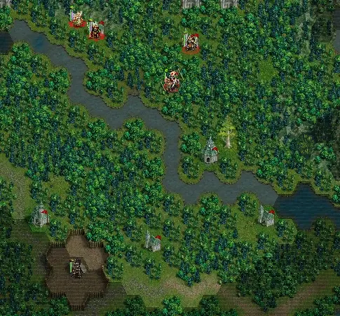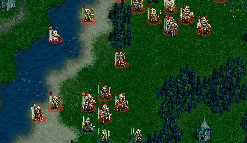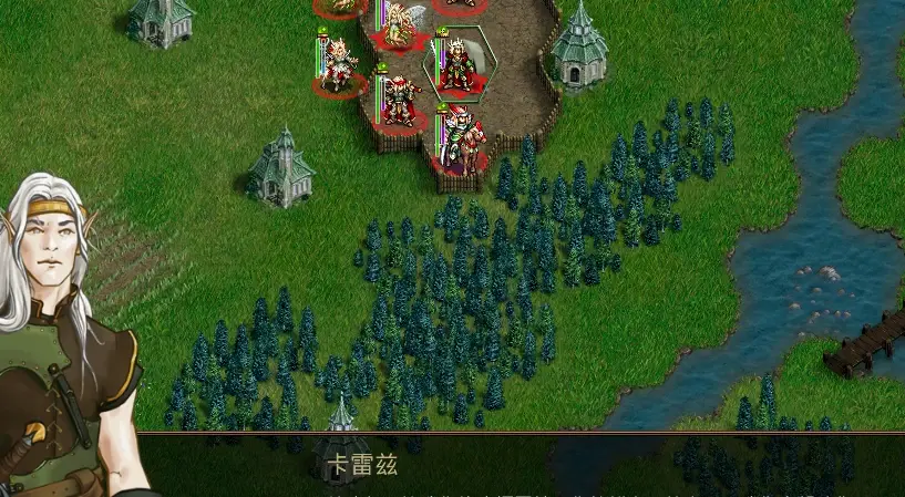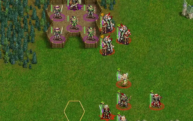 可以採取先弓箭手後騎兵,精靈仙子從中輔助,絕大多數的森林保障了我們這一關,可以輕輕鬆鬆的壓過去(如果沒有森林,或許我們能贏得更快)
