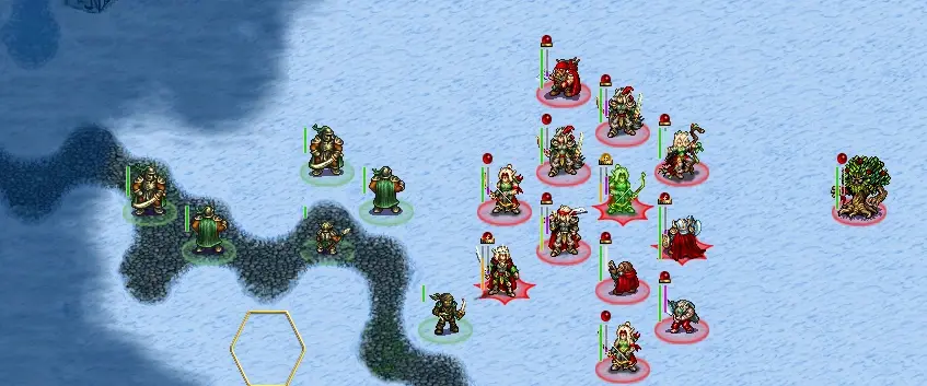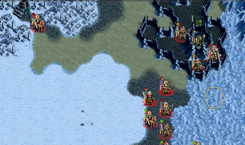 接下來說一下分配思路,將精靈矮人援軍分為兩個大部分,冰面作戰不僅限制了絕大多數軍隊的移動速度,而且雙方都更容易命中對方,