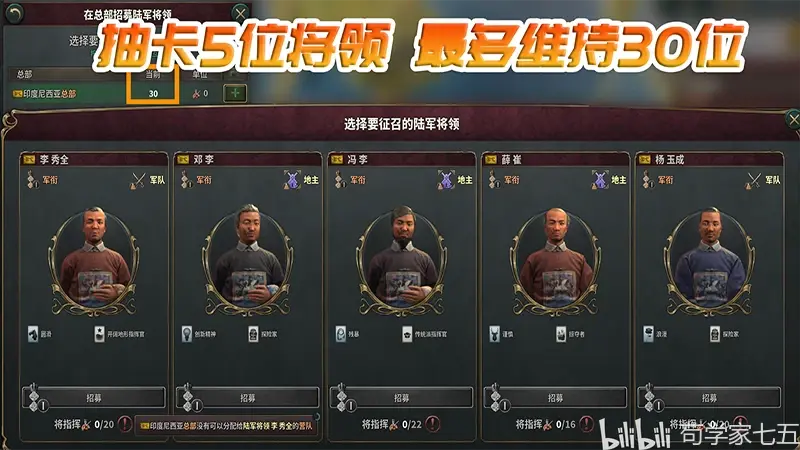 一次抽卡5位將領,最多維持30位將領。Draw cards for 5 commander at a time,maximum maintaining 30 commander.相容性良好Good compatibility影響路徑:game\common\defines\rfc_defines.txtModify path: game\common\defines\rfc_defines.txt修改內容:Modified content:NCharacters = {RECRUIT_COMMANDER_NUM_OPTIONS = 5 # default: 2 Initial Optional quantity 初始抽卡數RECRUIT_COMMANDER_POOL_SIZE = 5 # default: 3 Continuous Optional quantity 持續重新整理卡數MAX_NUM_CHARACTERS_PER_TYPE = 30 # default: 20 COMMANDER upper limit 維持將領數量上限}