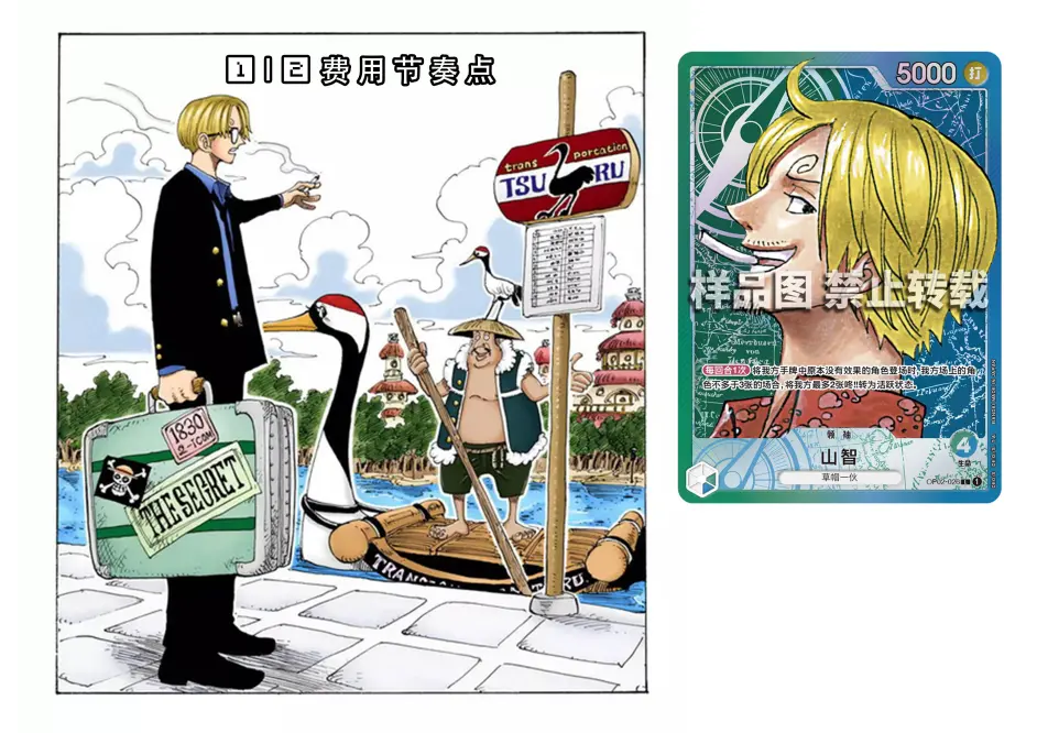 這套卡組的打法是以白板角色卡登場為主,觸發山治領航技能,留下費用作為事件牌反擊,解場以及補充手牌的作用。