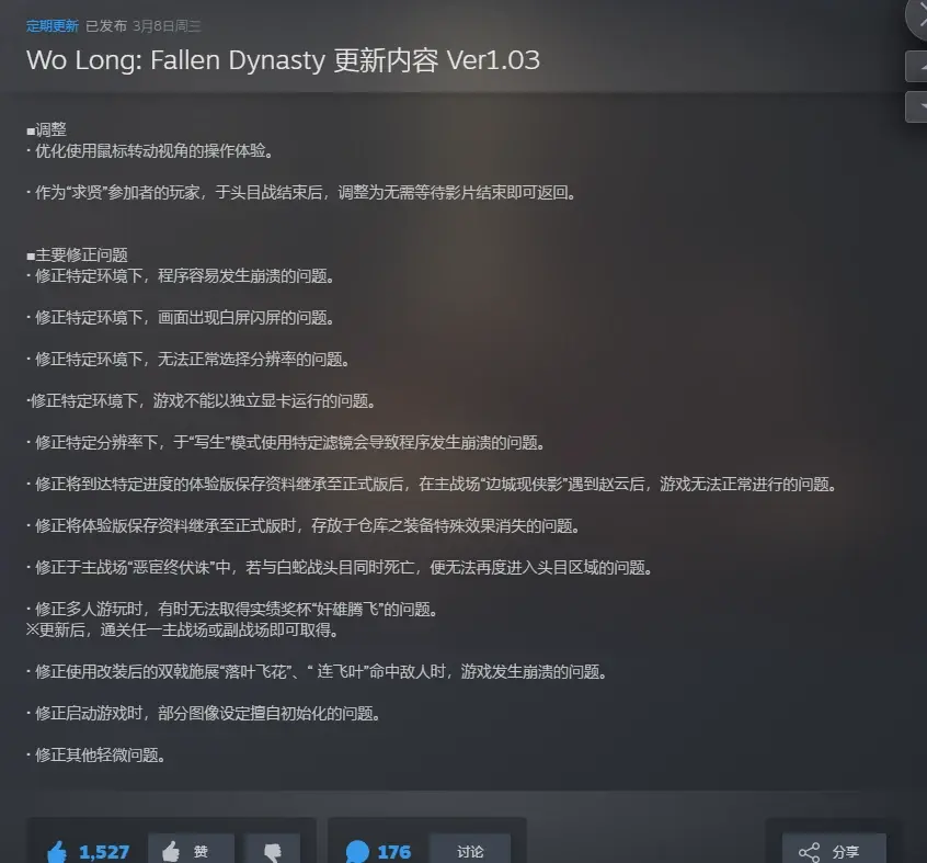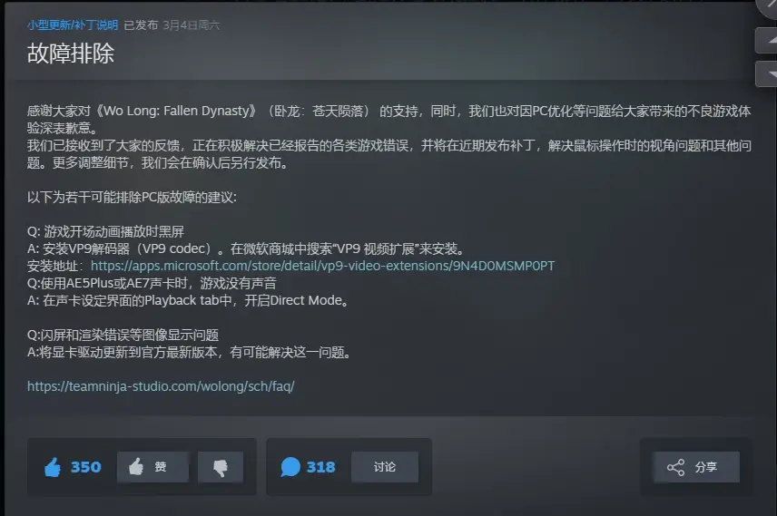雖然後期Team NINJA緊急新增了一個補丁,進行了兩次優化,但糟糕的遊戲體驗依舊沒能有很大的改善,截至到3月16日,過了十幾天如今的好評率依舊只有44%,提升了7%。