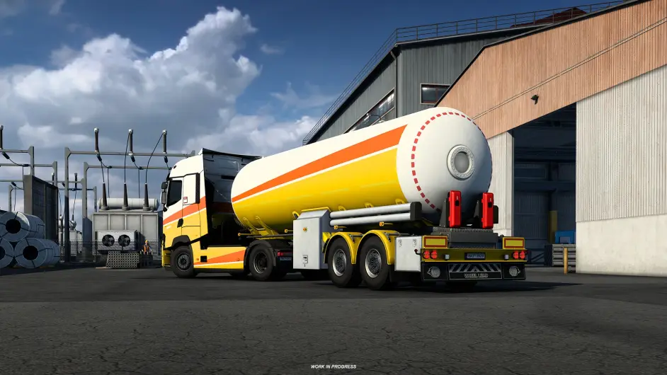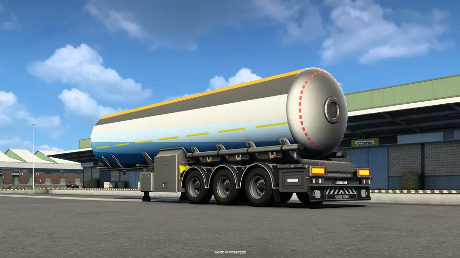 歐洲卡車模擬2的自有燃氣罐將在歐洲最常見的拖車組合中提供。這是帶有40m3氣罐的單2軸10米底盤和帶有50m3氣罐的單個3軸12米底盤。附件包括(但不限於):