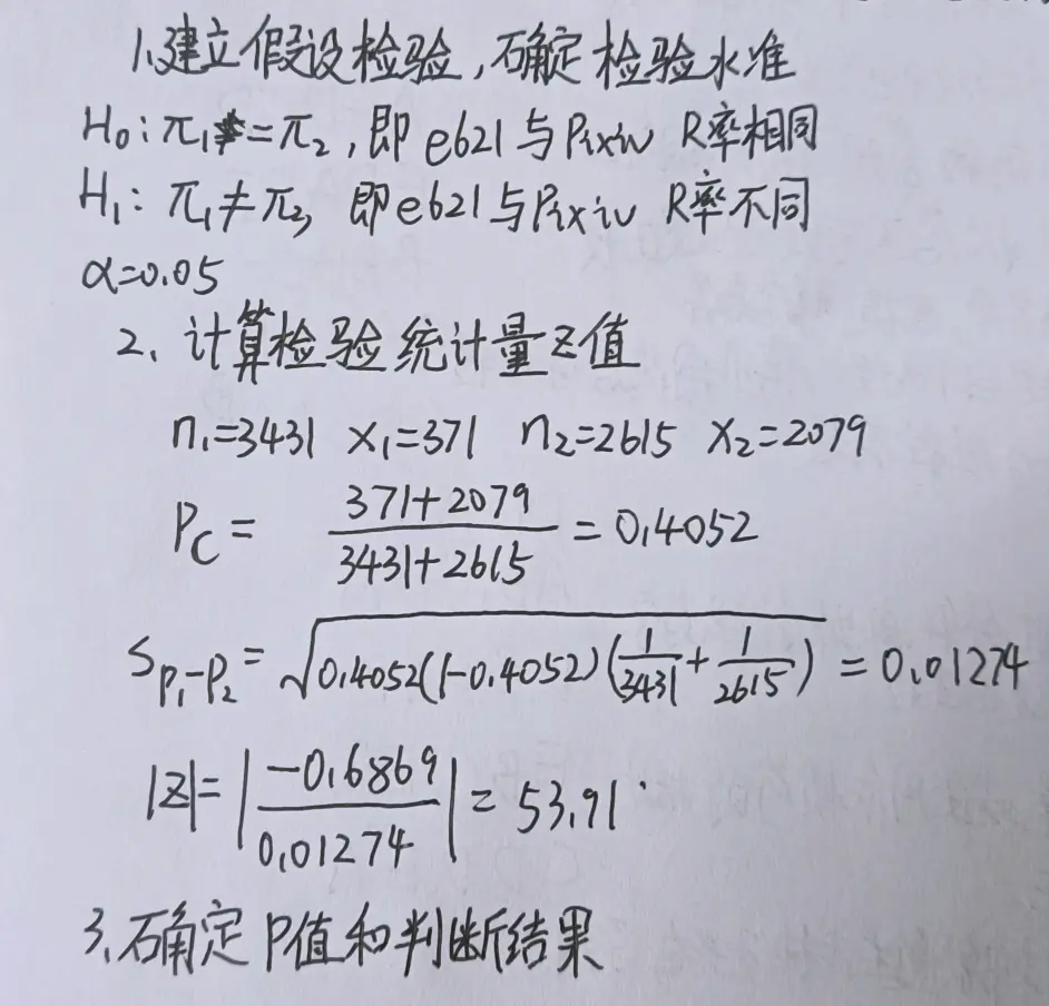 這裡我採用的是率的z檢驗,但是兩邊的圖是不是符合正態分佈就不清楚了,在這裡我們下結論:本例z=53.91>2.58,P<0.01,按α=0.05水平拒絕H0,差異有統計學意義,認為e621和Pixiv的君主蛇r率不同,即e621君主蛇r率高於Pixiv