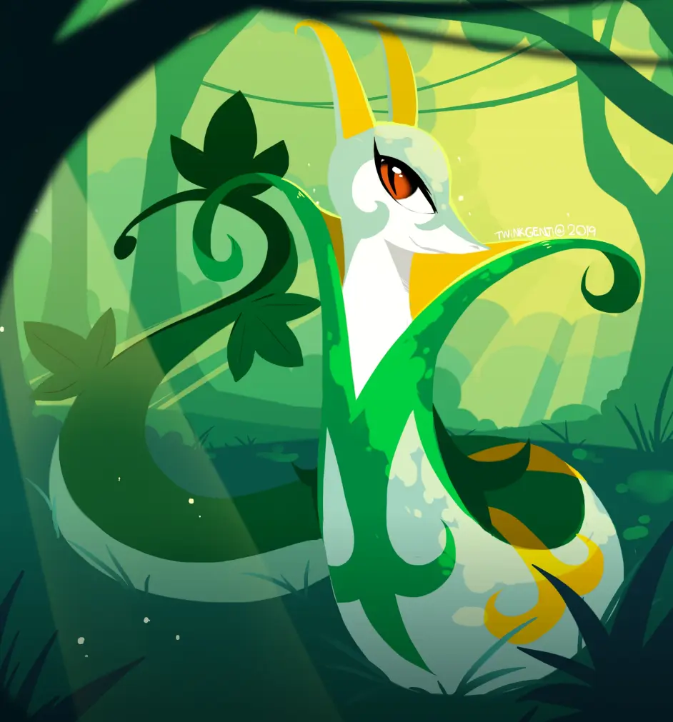官繪圖君主蛇,皇家寶可夢,又叫草蛇,是草貓之前的草系本子王,最近快被草貓反超