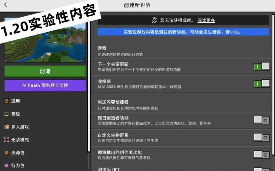 Minecraft 1.19.4實驗性遊戲內容主要分為兩個部分。