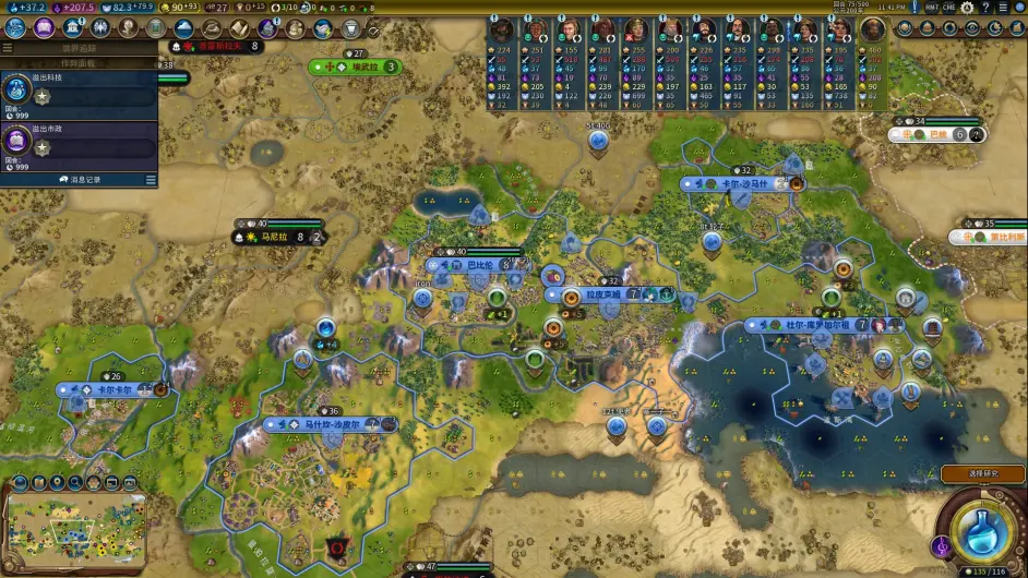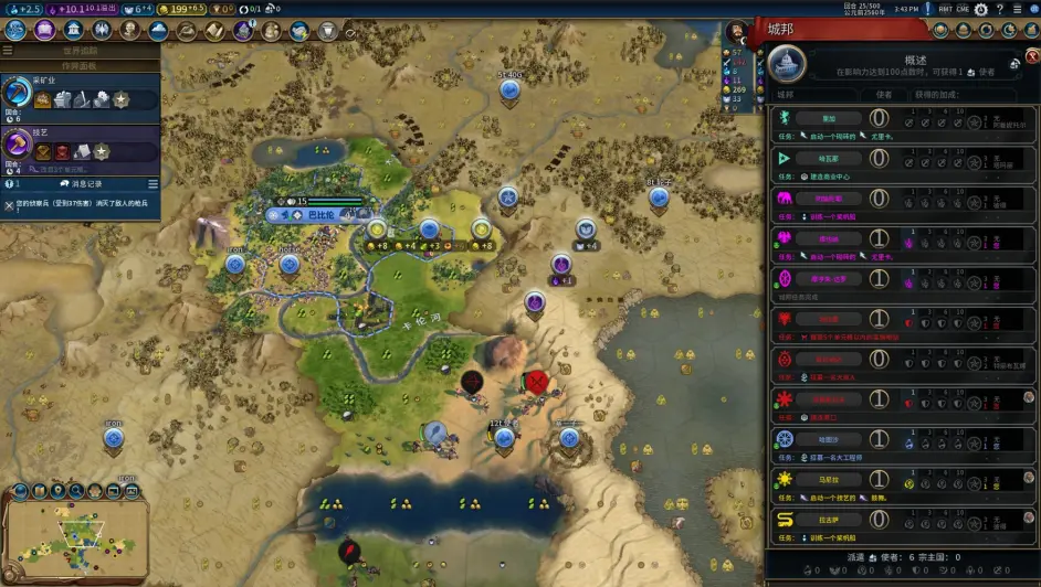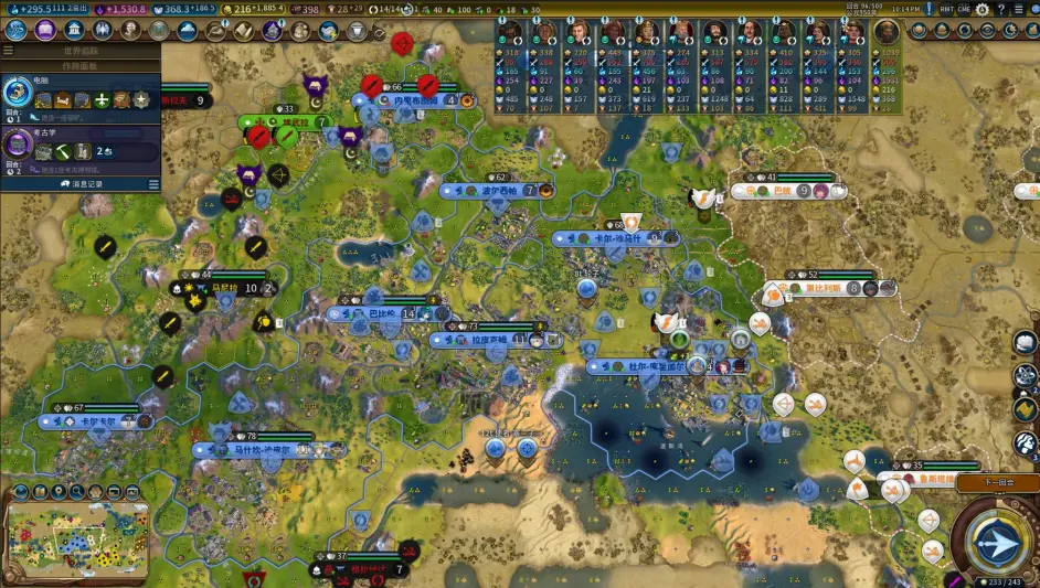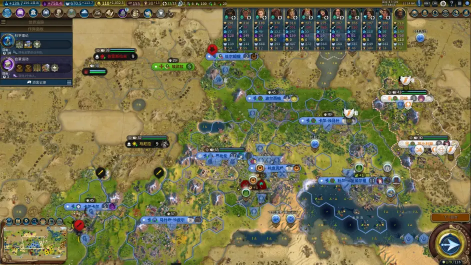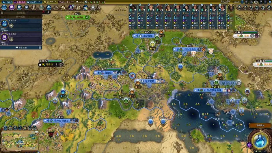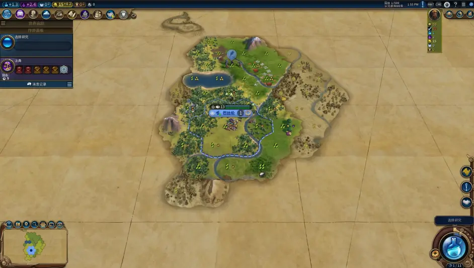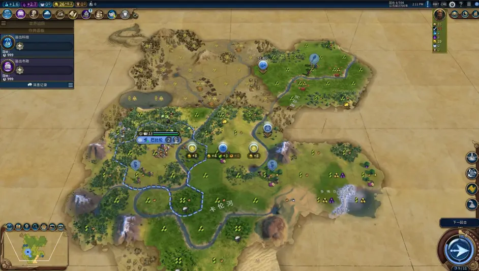 至此,前3城規劃完畢,節奏很舒服,預計43t左右就可以解鎖一級政體;
