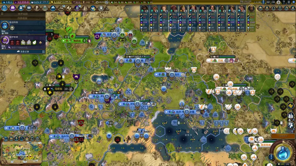 開局1t右下角就泛洪了(樂,我不想用時光機還特意調整了自然災害0),米和左一加了一錘。