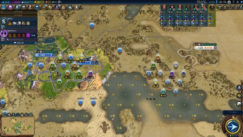 巴比倫人稱小仰光(v1.2版本仰光效果為淡水地塊+1糧,妥妥的農邦大爹一號位),在千河圖非常強力;