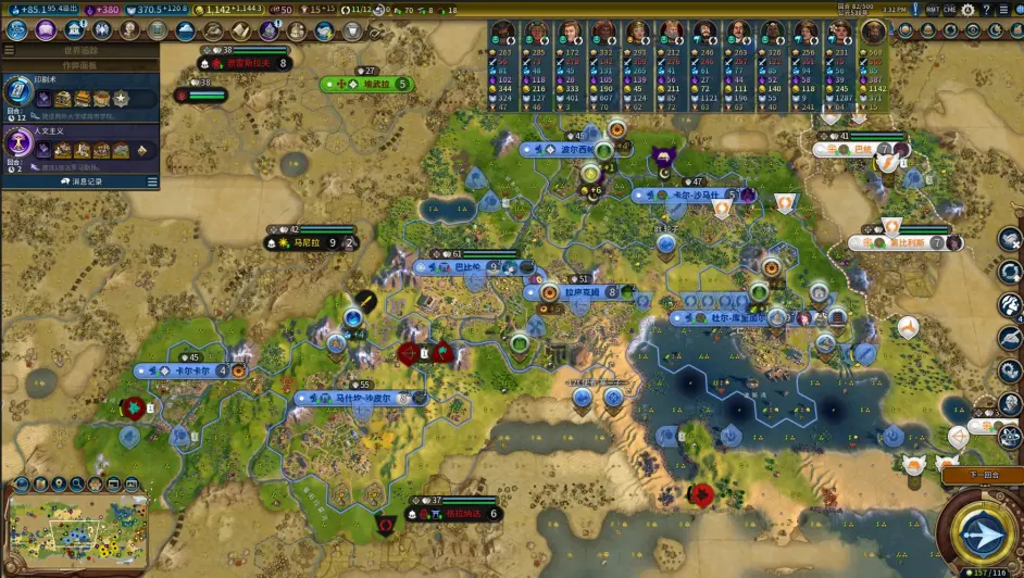 為了強迫自己不挑圖,決定模仿老BA,只開三張圖並選擇最喜歡的打,在紅鬍子神羅和巴比倫間選擇了巴比倫。紅鬍子神羅是我入坑civ6時最喜歡的領袖,工商雙輔可以說是普適一切圖的,但本命文明巴比倫的上限和趣味性明顯更高一些。