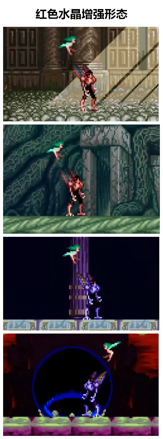 比如前四關都融合了紅色水晶。惡魔形態不變,但力量增強。
