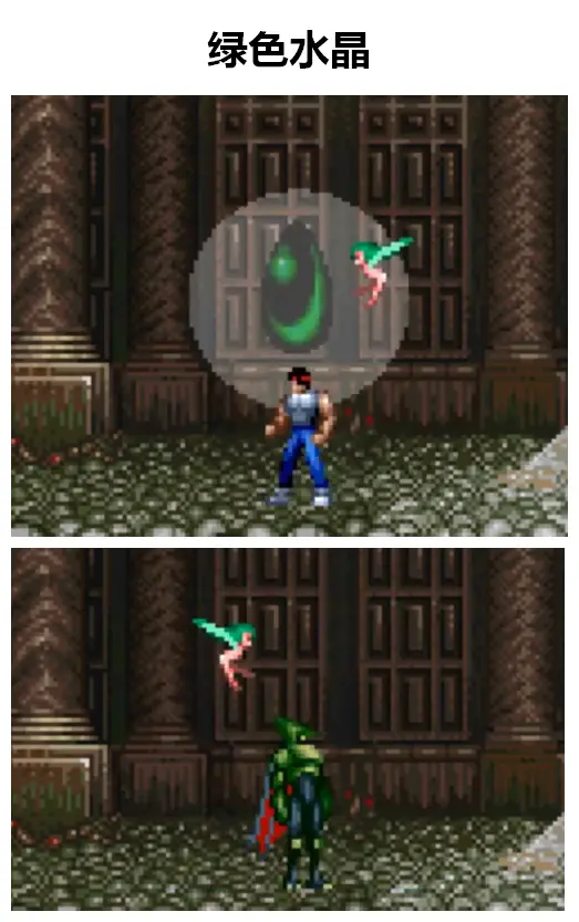 如果不吃水晶的話,以人類形態通關的話,破關後遊戲會進入壞結局。