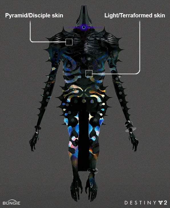 需要注意的是,我並不是覺得Bungie現在的Raid製作理念和模式有什麼問題,畢竟巧婦難為無米之炊,但是真正的問題,可能來自於棒雞想改變這種模式,而不是遵循年3-年5成功的模式。我們知道,很顯然棒雞不可能把Raid組分為4個獨立的組,每個組分別做一個BOSS,很顯然,遊戲的開發是循序漸進的。從巨集觀世界的機制來看,棒雞可能在立項的時候是將夢魘根源定義為一個大Raid,並且實實在在做出了巨集觀世界這樣的關卡-----但是很有可能,在做完這個關卡之後,等輪到真正的重頭戲時奈扎雷克時,卻發現手上的預算和時間成本不足了-----這是我個人的猜測。換句話說,可能在原始的設計中,奈扎雷克的機制遠遠比下來的連兩根線要複雜,我猜測的根據來自於棒雞最新解禁的原始設計圖。從設計圖中,我們可以清晰地看到,文字說明中,奈扎雷克一共分為4個階段,其中第一和第二階段是免疫的,第三和第四個階段是可以攻擊的,除此之外,奈扎雷克還分為光能親和和暗影親和兩種形態。此外,奈扎雷克原始設計圖中,身上黑色部分為暗影和門徒面板,而條紋狀的部分為光能行星化面板,會持續變換顏色,而遊戲最終上線版本奈扎雷克僅為一個類似於普通折磨者的紅色外殼。雖然我不知道在原始設計中奈扎雷克會有什麼樣的表現,或許他會有更復雜的光能/暗影技能,或許左右兩邊光能和暗影的連線是用來解決奈扎雷克光能/暗影不同的親和而不只是連完就進入輸出階段,或許巨集觀世界中出現左右玩家資訊交換的機制會扮演一席之地,或許奈扎雷克擁有更多的階段,更復雜的斬殺階段……但最終沒有如果,因為他並沒有被實際製作出來。或許Bungie在萬般無奈之下,經過他們不完善的”居家辦公“測試後,感覺奈扎雷克在某種程度上已經達到了發行標準-----而他們完全沒有測試到有臺子這種能讓BOSS淪為一個RBQ的存在----便匆忙上線,並最終交出了這樣的答案。
