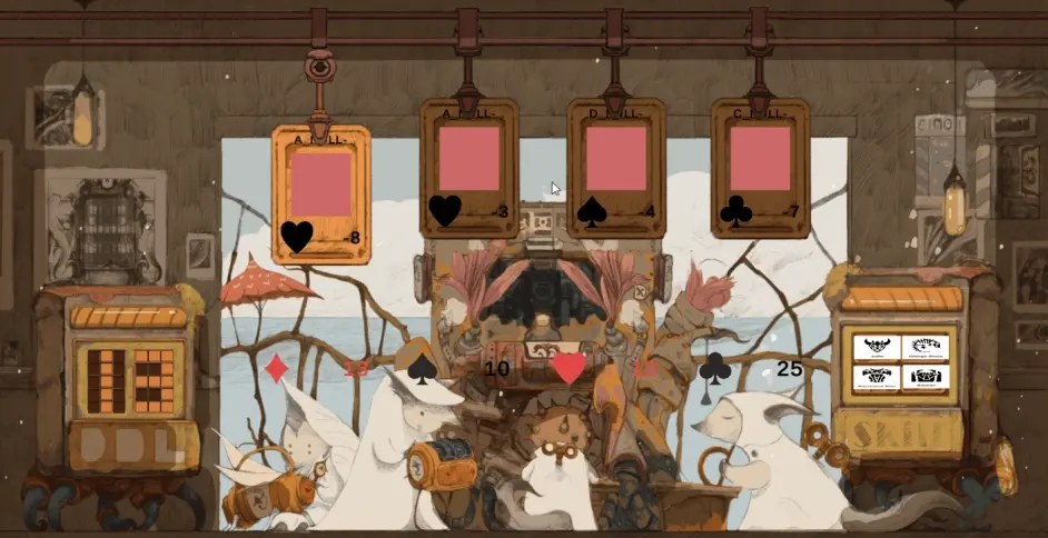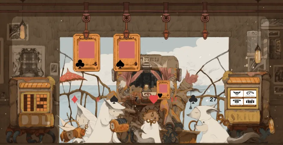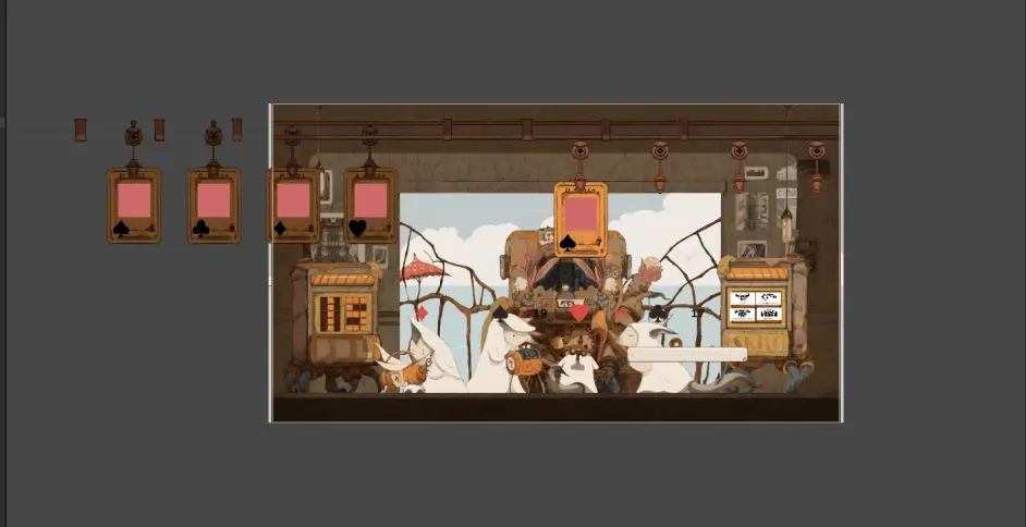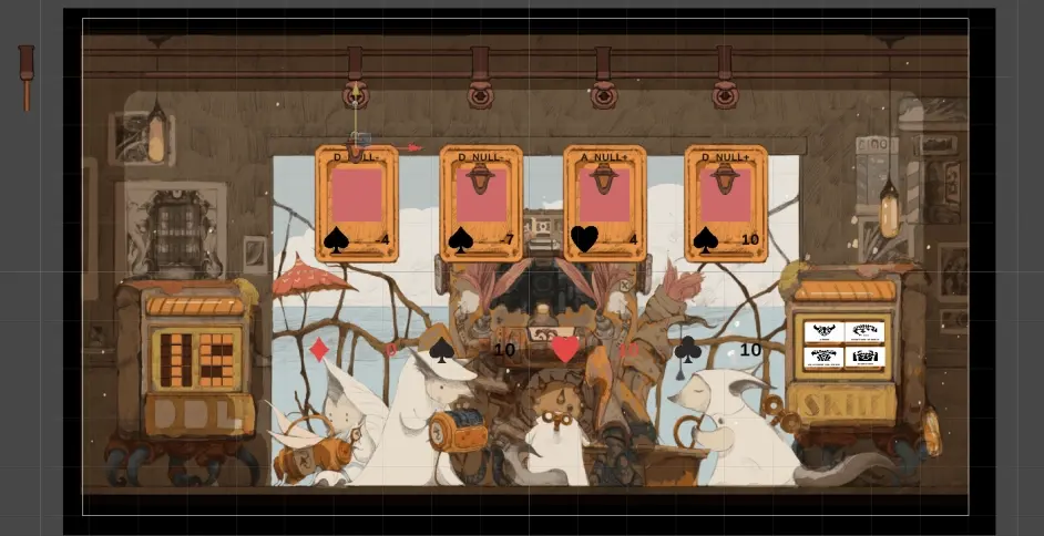 因為內部人員測試的時候,老是有人說之前的抽卡形式像抽廁紙,雀食!所以我就和美術Friedegg商量了一下,弄了個新的抽卡方案,轉成用軌道滑輪的形式。
