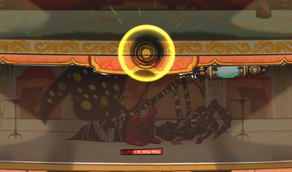 “終末鳥”張開翅膀,在蓄力後對房間內所有的單位發射鐳射。鐳射共有26條,每條鐳射會造成 8-14 點侵蝕傷害,且會隨機分散至房間內所有的單位上。若房間內沒有任何單位,則終末鳥會收回翅膀並取消蓄力;